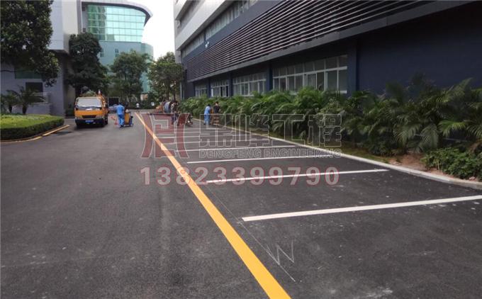 庭威产业园道路长级白改黑,对旧路面重新铺设沥青混凝土,重新划标线。