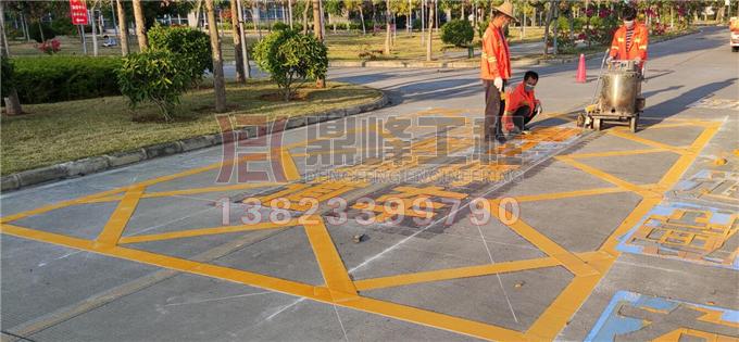带禁停网格的消防通道字样的地面热熔标记,是提示机动车不能停放占用。